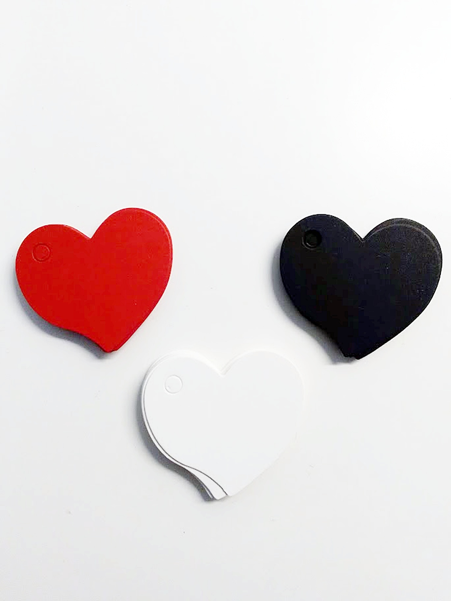 10 kleine beschreibbare Anhänger in Herzform. Sie sind zum Basteln, Bemalen, zum Anbringen an Geschenke oder als Dekoration geeignet.