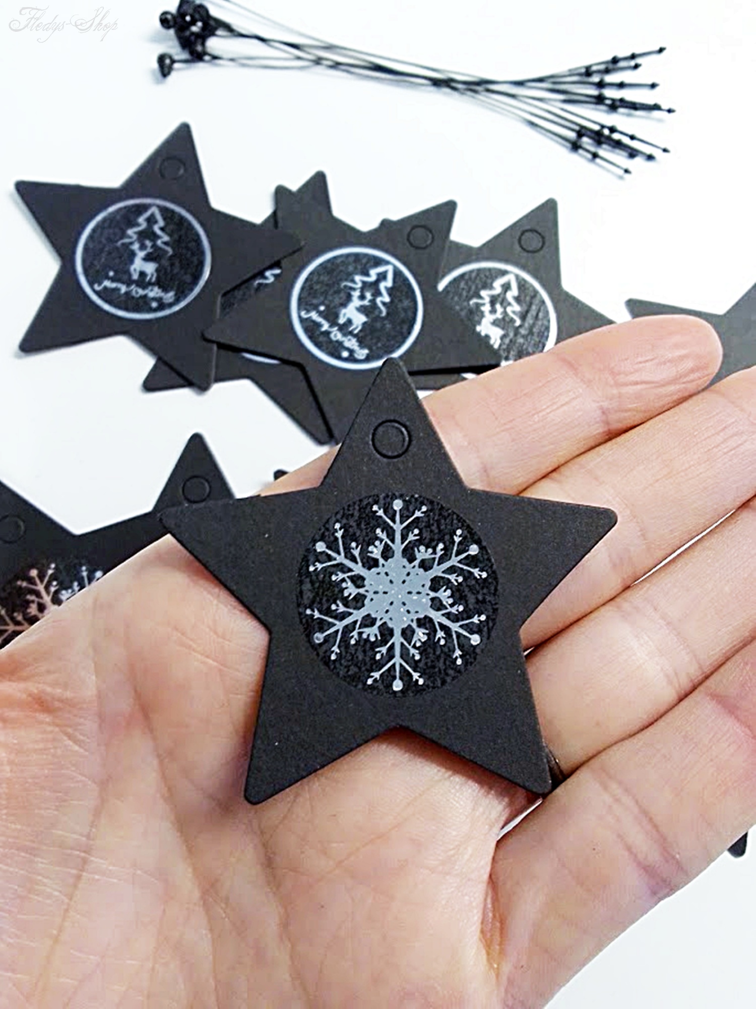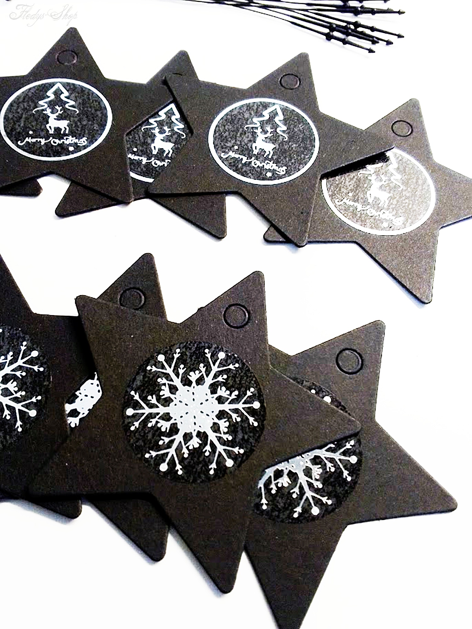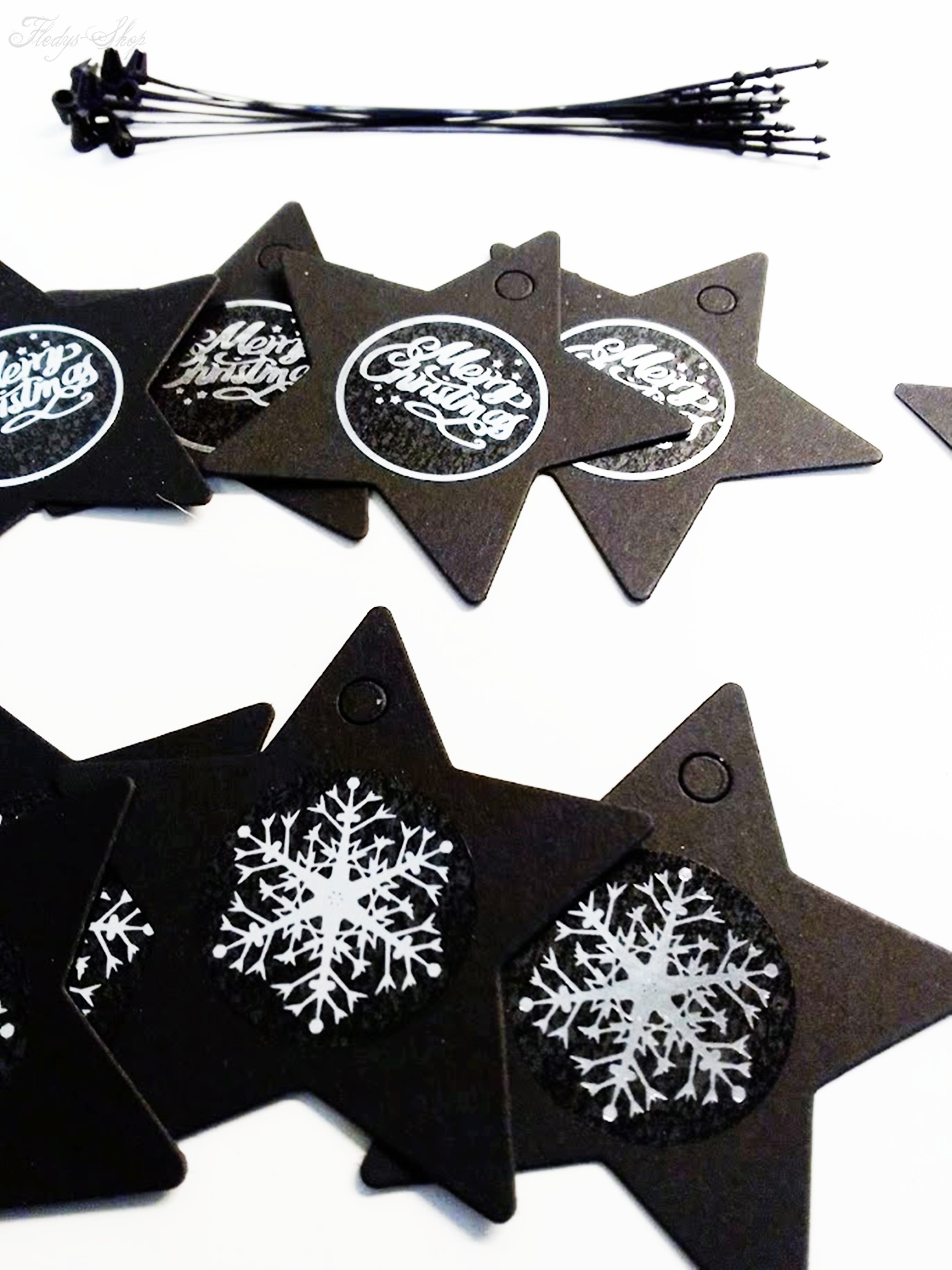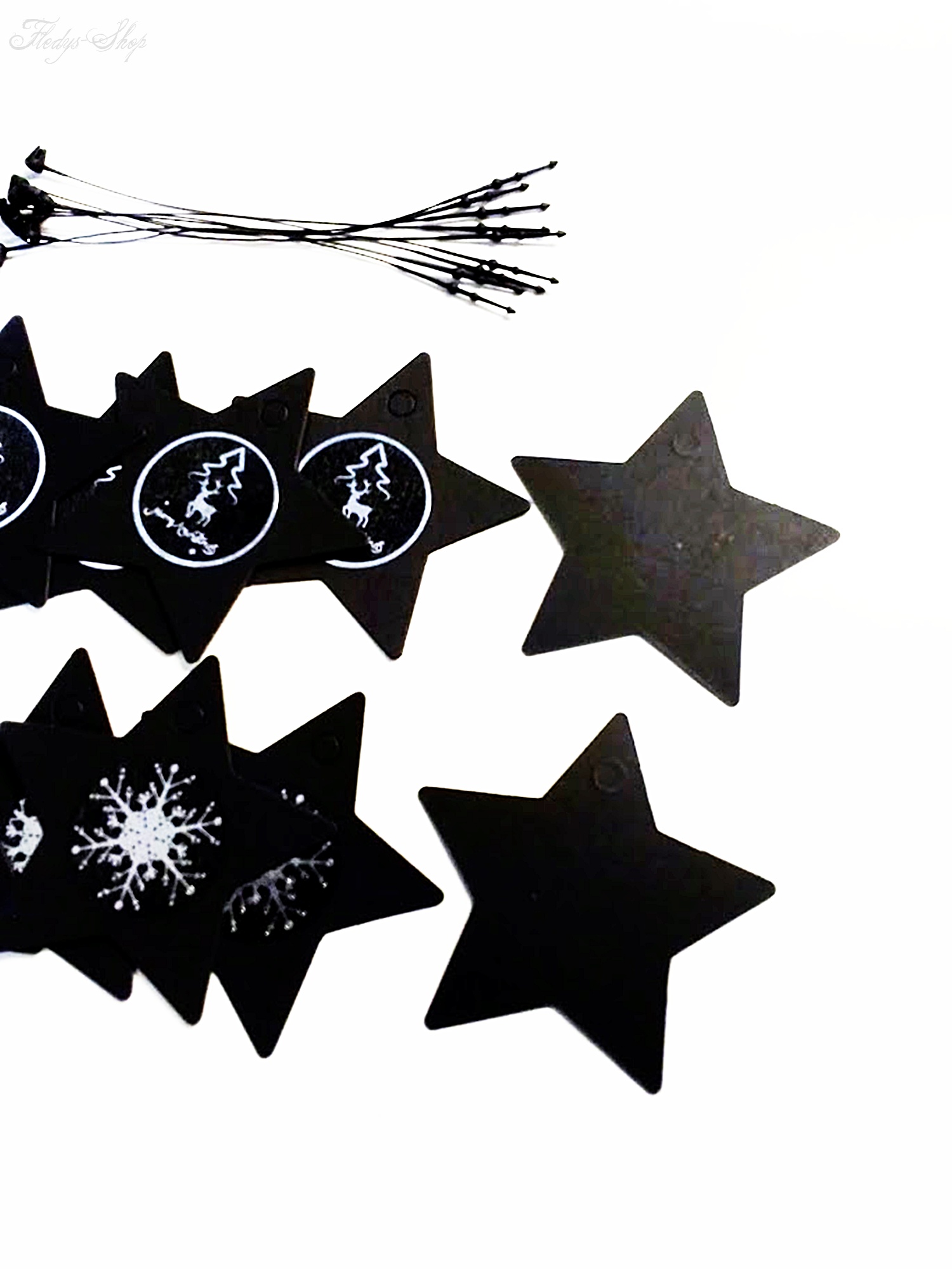 10 Geschenkanhänger in Sternform, davon sind 5 Stück mit der Beschriftung „Merry Christmas“ und 5 Stück mit einer Schneeflocke. Das Geschenkanhänger Stern Set ist in 2 Varianten auswählbar. Zu jedem Geschenkanhänger gehört ein schwarzer Kunststofffaden mit Sicherheitsverschluss, sodass dieser am Geschenk schnell befestigt werden kann. Zum Beschriften eignet sich hier ein Silber- oder Weißmarker.