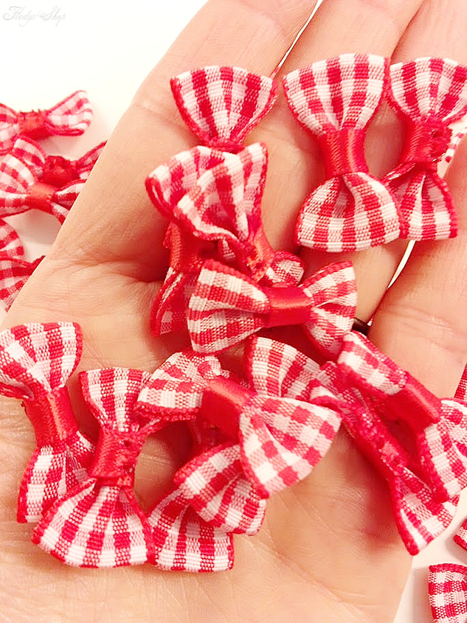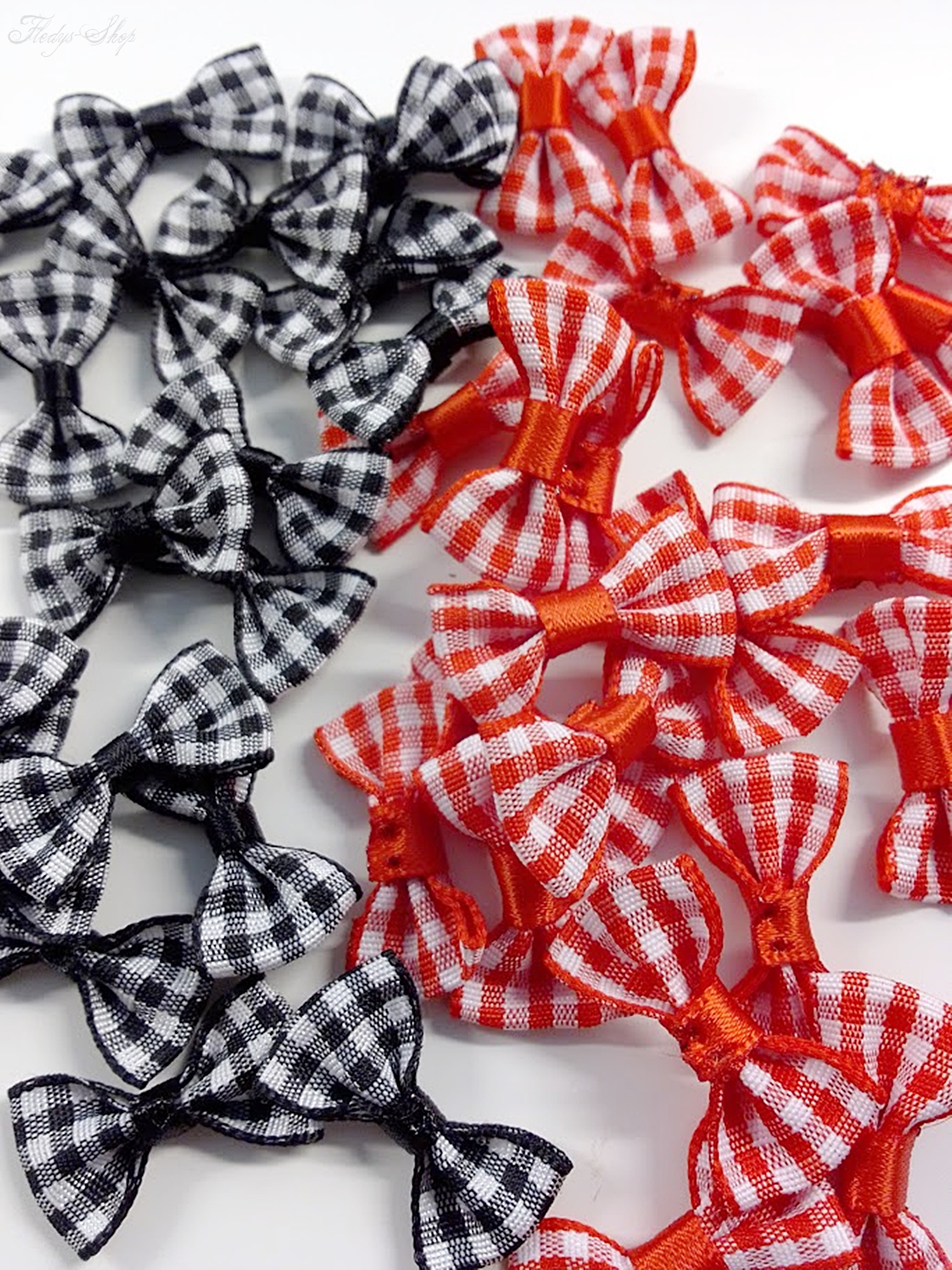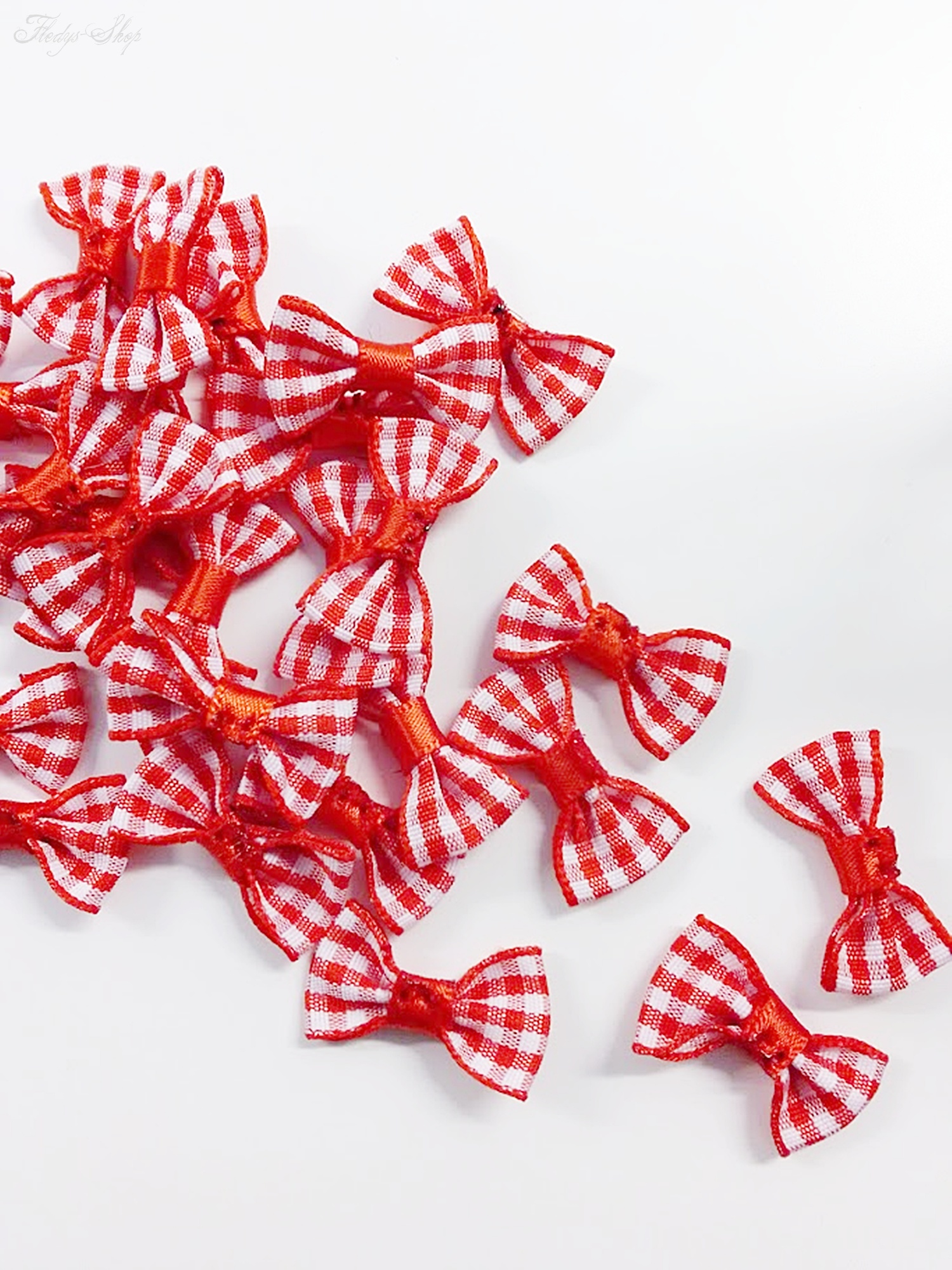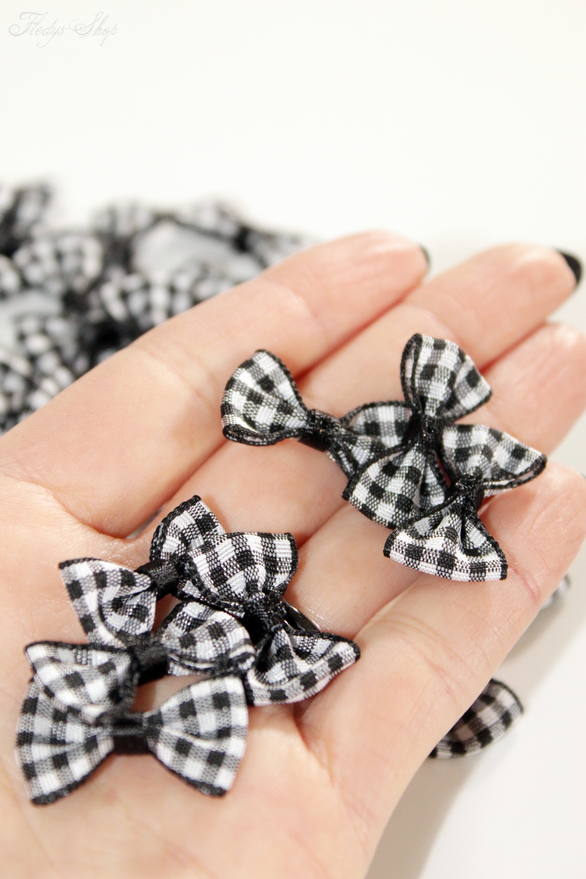 10 kleine karierte Stoffschleifen, geeignet zum Annähen, zum Basteln, als Wurfmaterial, für Haarschmuck und vieles mehr.