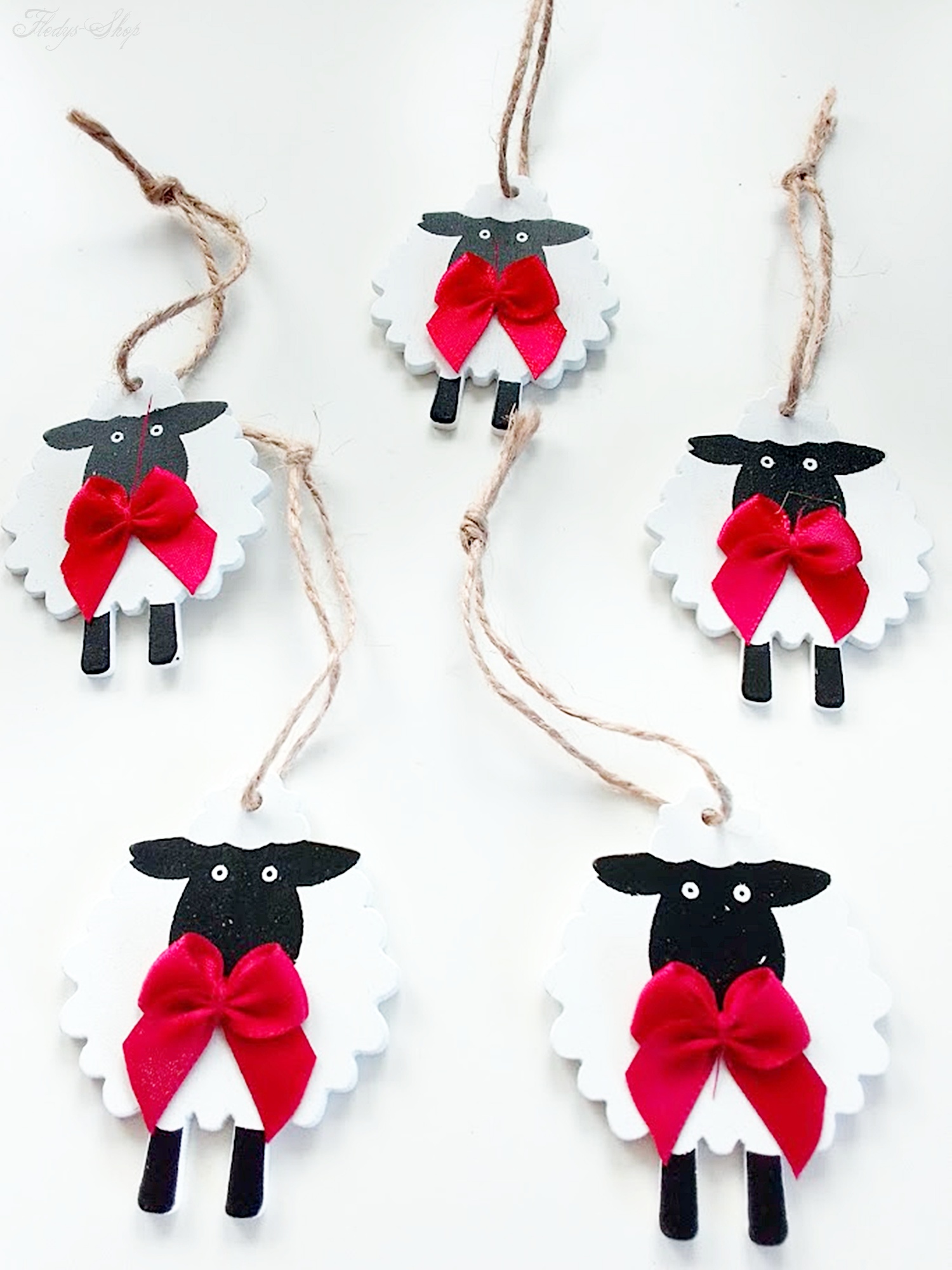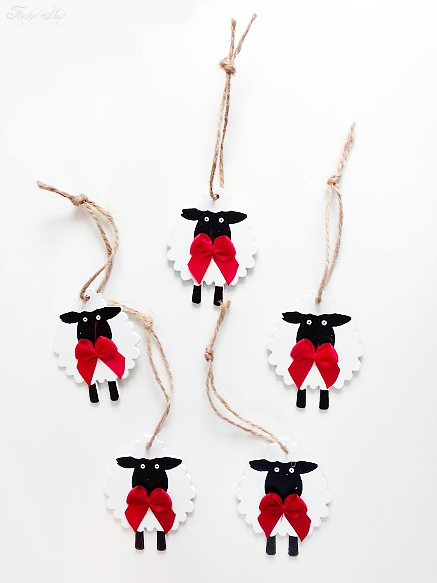 Diese 5 entzückenden Schäfchen mit einer Schleife sind für einen großartigen Baumschmuck bereit. Zu jedem Schäfchen gehört eine Juteschnur für die sofortige Nutzung der Dekoration.