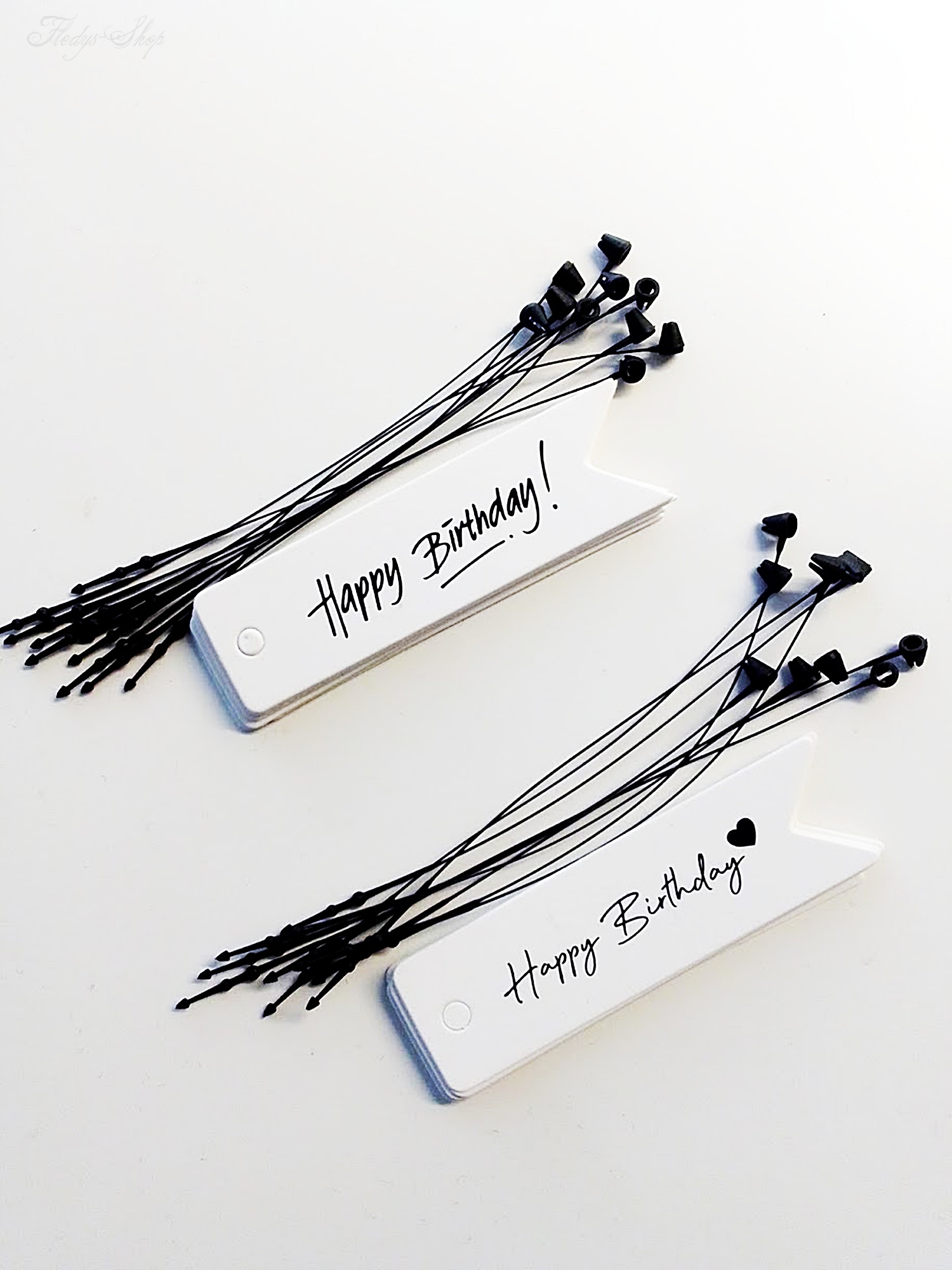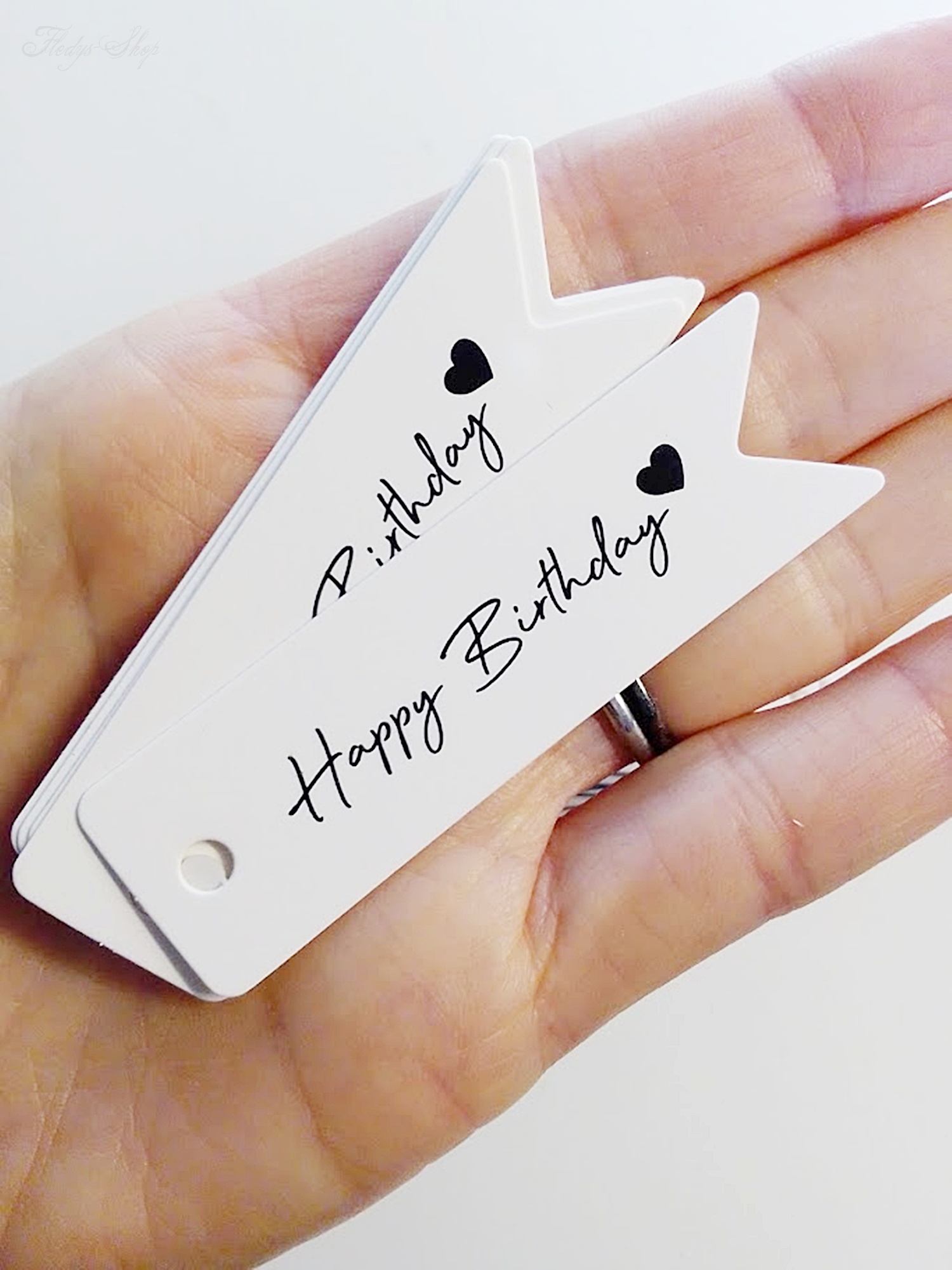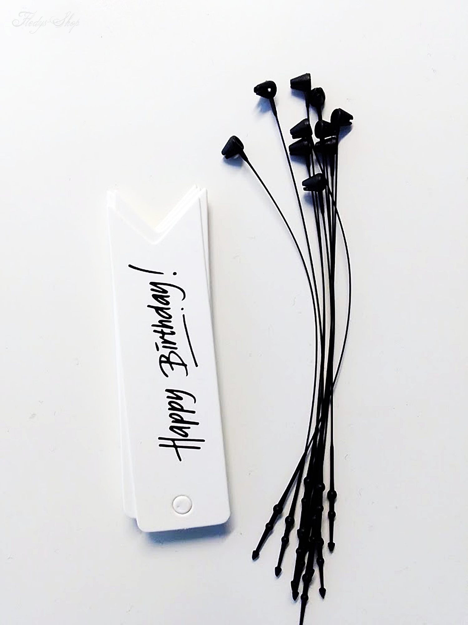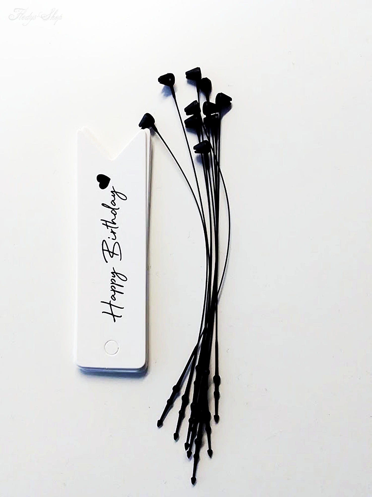 10 Geschenkanhänger in 2 Varianten wählbar mit der Beschriftung „Happy Birthday“. Zu jedem Geschenkanhänger gehört ein schwarzer Kunststofffaden mit Sicherheitsverschluss, sodass dieser am Geschenk schnell befestigt werden kann.