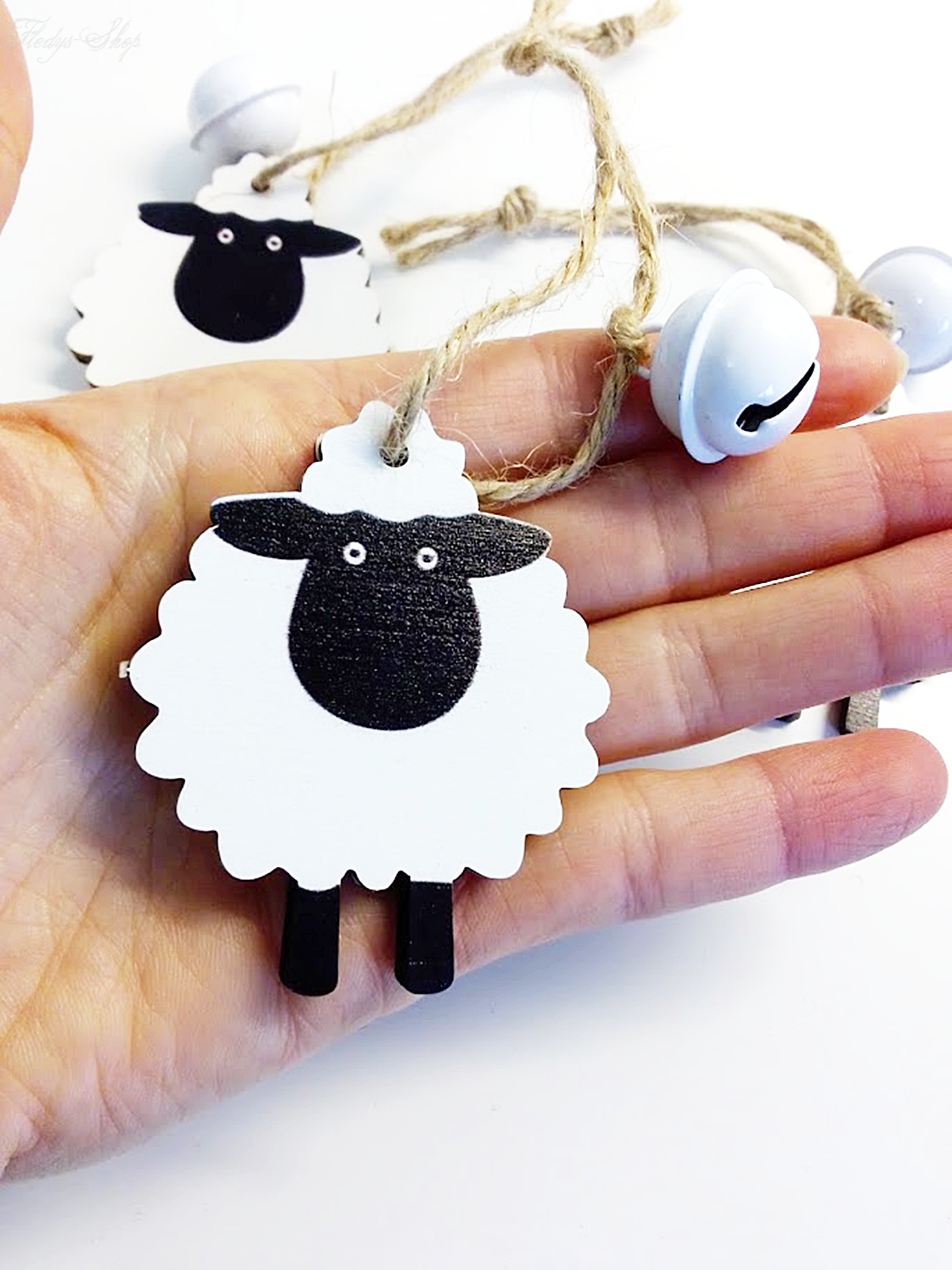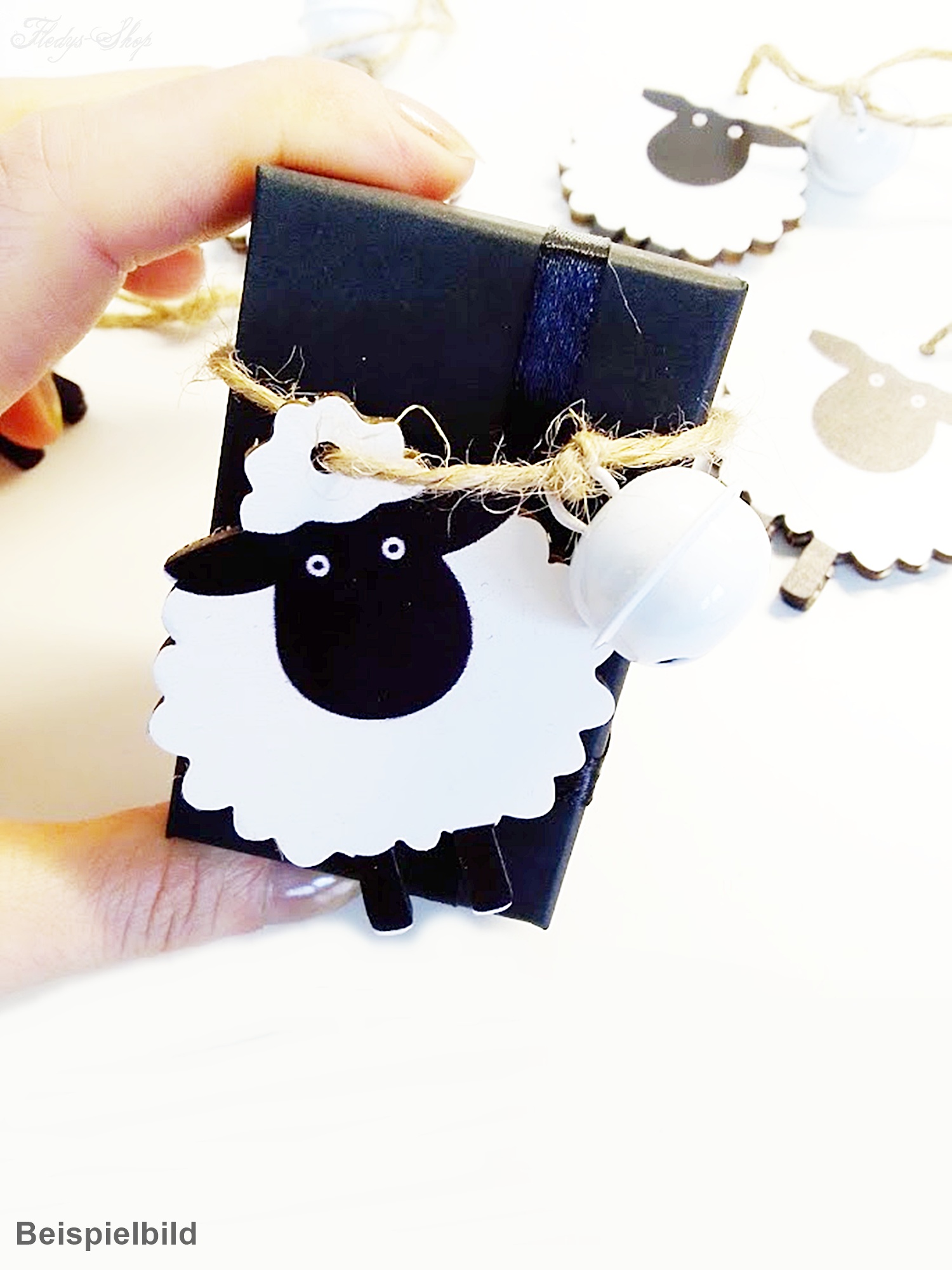 Dieser niedliche Geschenkanhänger mit einem Holz-Schaf, ist an einer Juteschnur mit einer weißen Metall-Glocke bestückt. Der Geschenkanhänger Schaf mit Glocke, eignet sich hervorragend an Geschenkkästchen, Tütchen, als Anhänger in der Osterzeit oder als Baumschmuck.