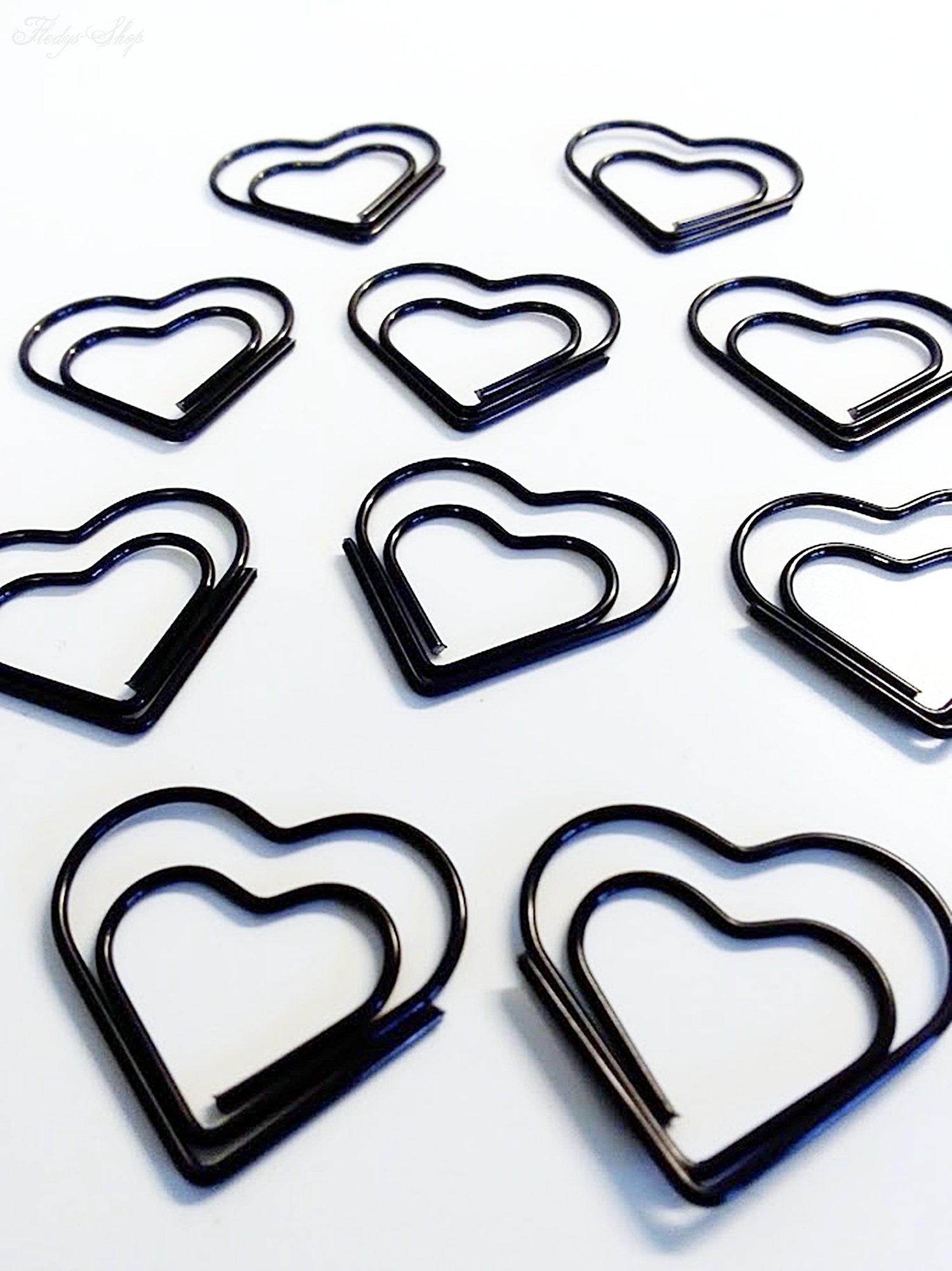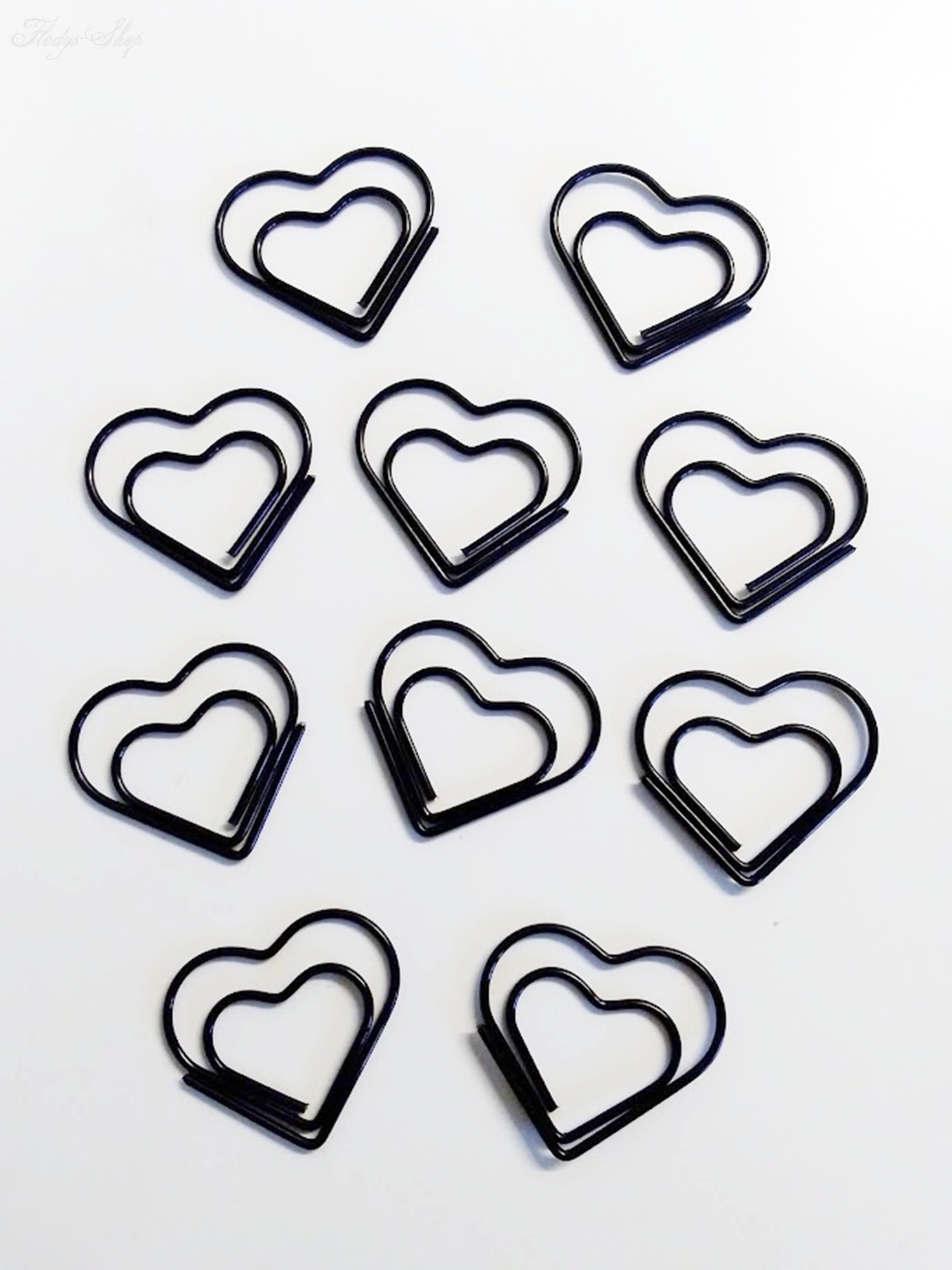 10 kleine Büroklammern mit Herzmotiv für Unterlagen, Geschenkkarten, zum anheften an Notizen und vieles mehr. Durch die flexible Klammer ist die Herz-Büroklammer schnell und vielseitig einsetzbar.