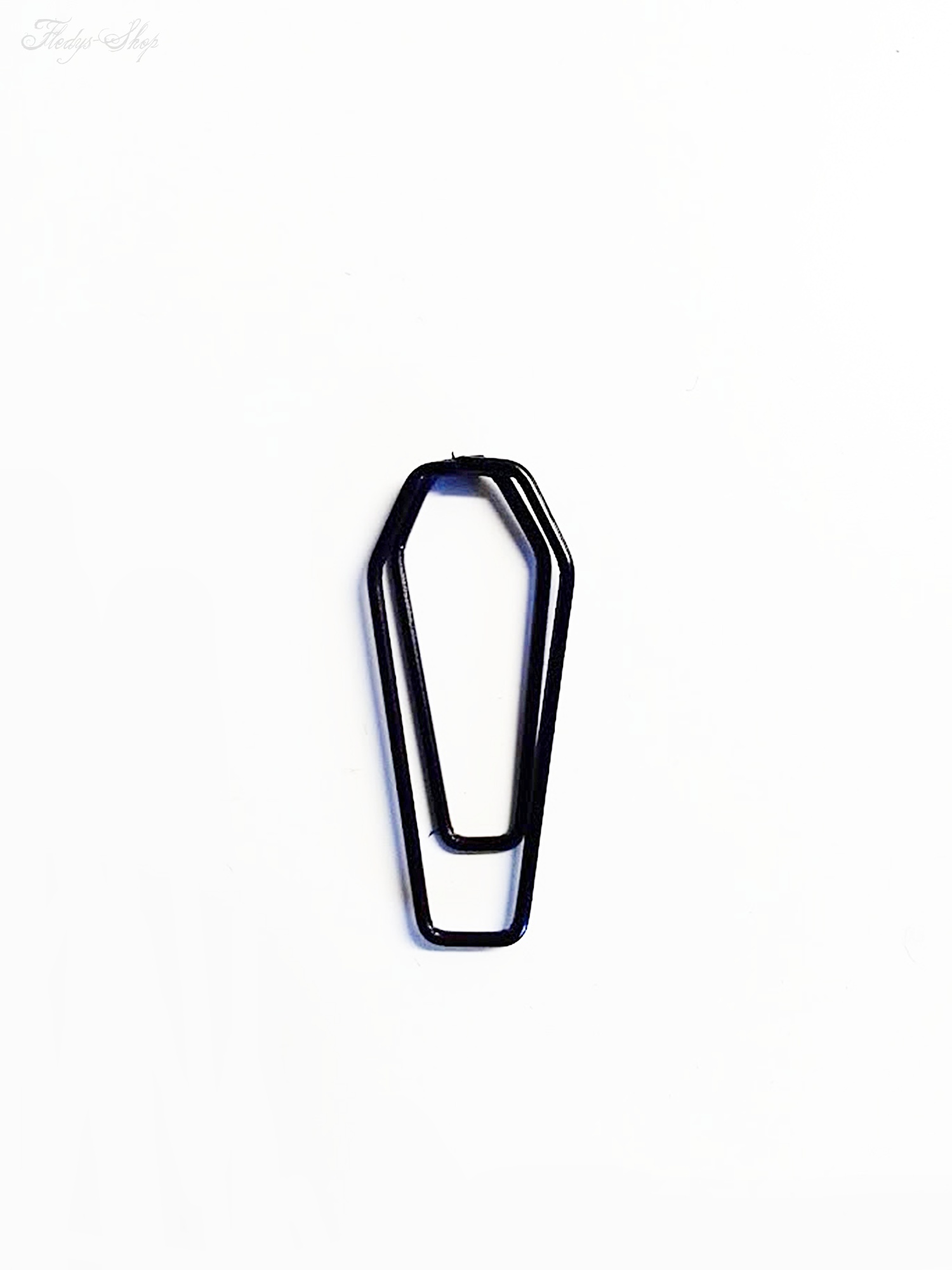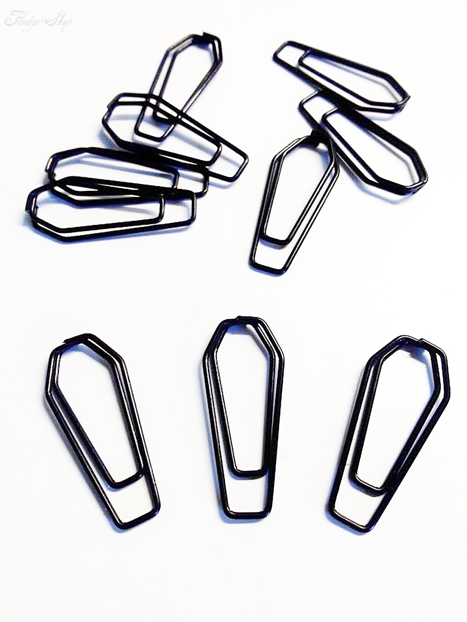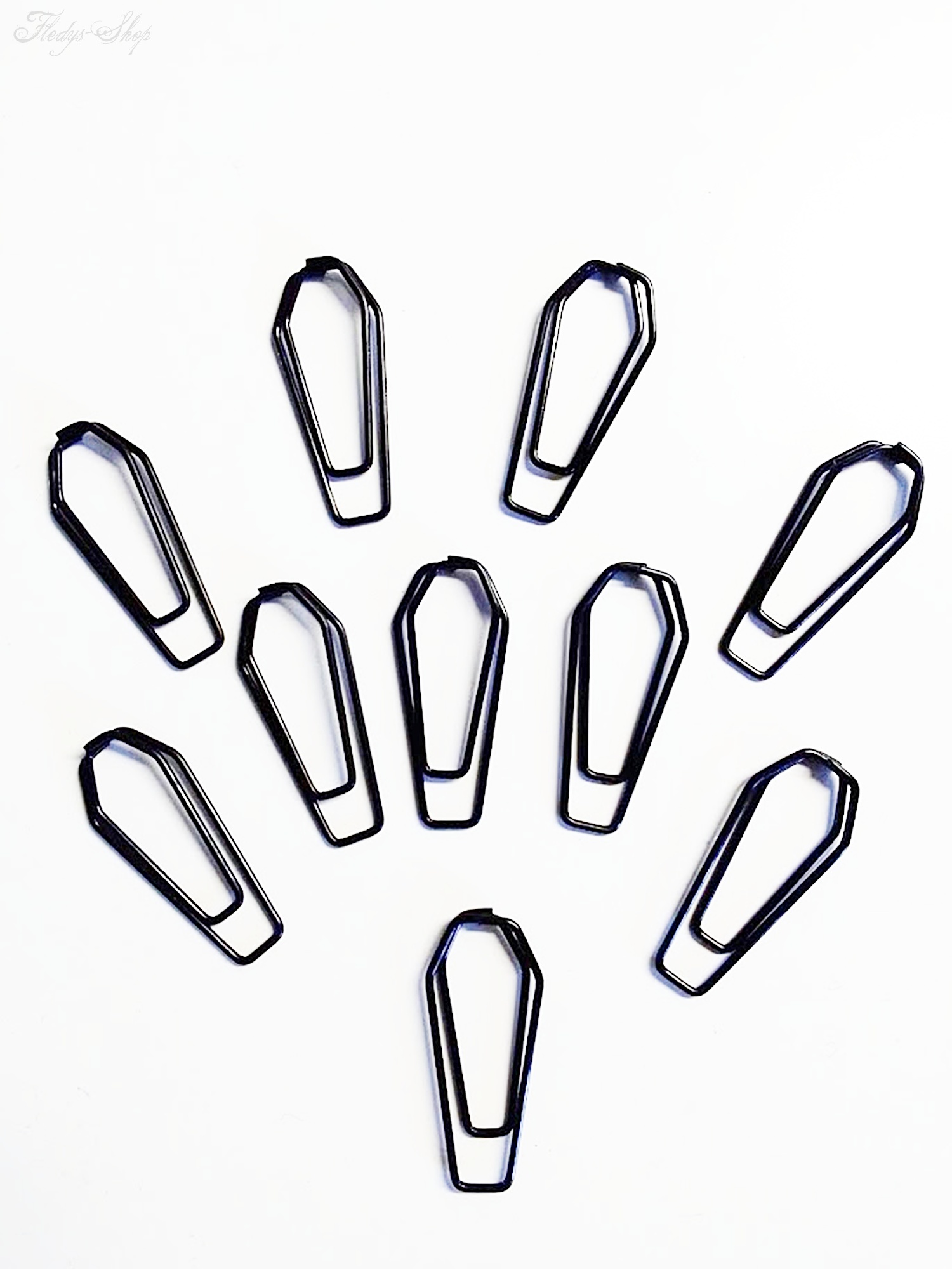 Diese 10 Sarg - Büroklammern, sind perfekt für Unterlagen, Geschenkkarten, zum Anheften an Notizen und vieles mehr. Jede einzelne Büroklammer mit ihrem Sargmotiv ist schnell anwendbar.