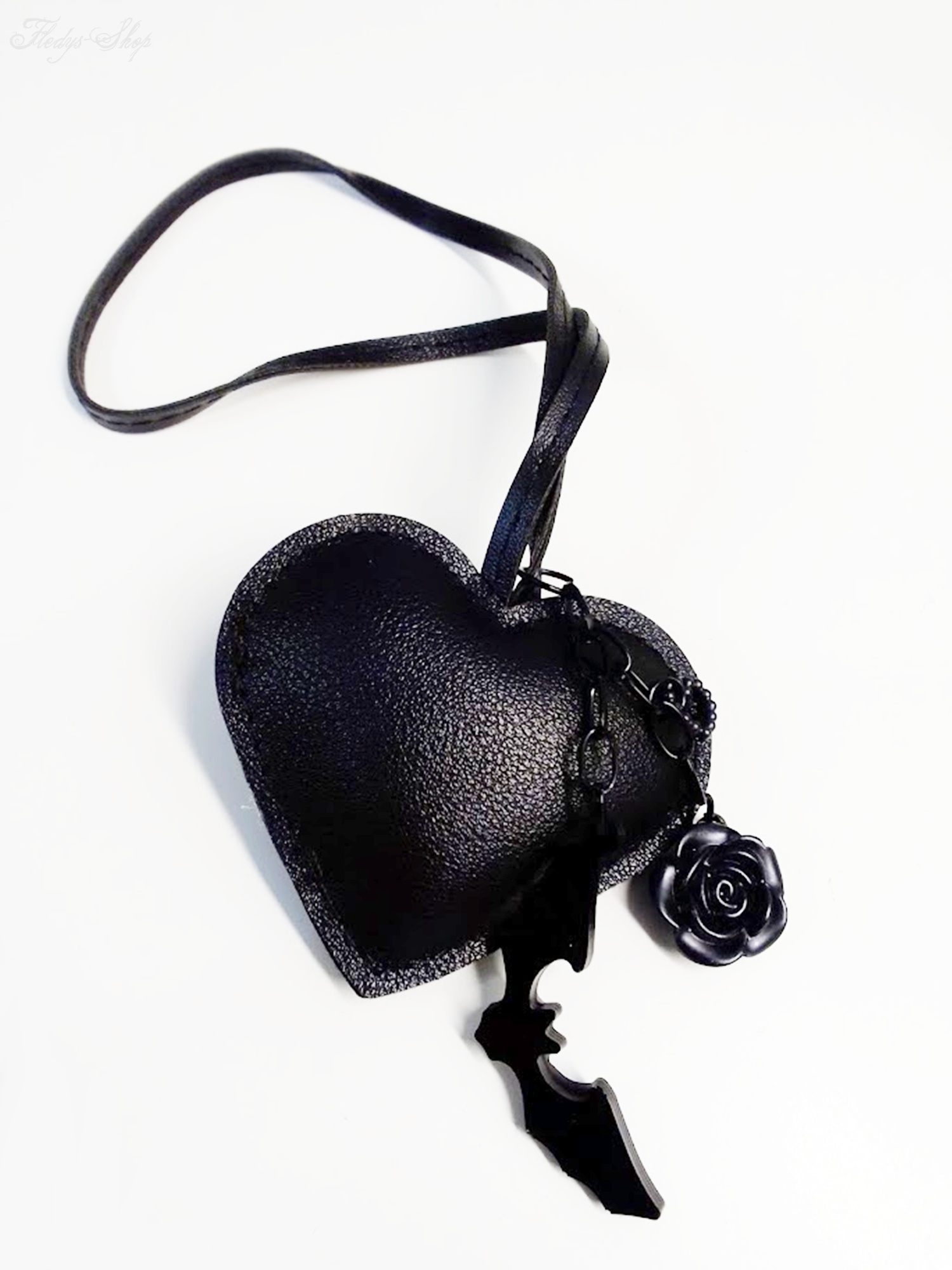 Dieser hochqualitative Taschenanhänger aus einem PU-Leder-Herz, ist mit einer Fledermaus, einer Rose und einem kleinen Herz an einer Gliederkette bestückt. Der Taschenanhänger eignet sich hervorragend an Handtaschen, Rucksäcken oder als optischer Hingucker zum Gothic-Outfit am Gürtel etc.