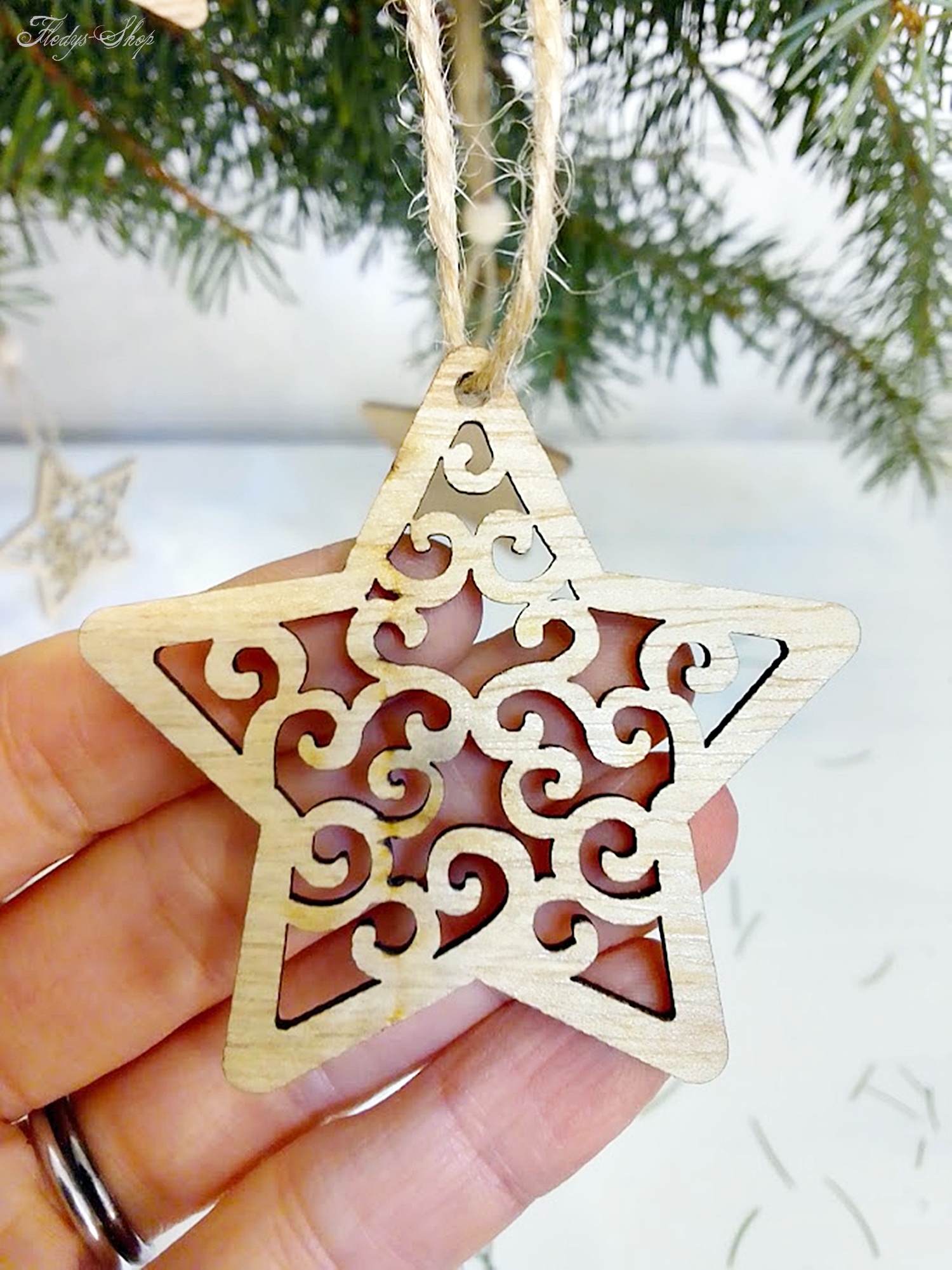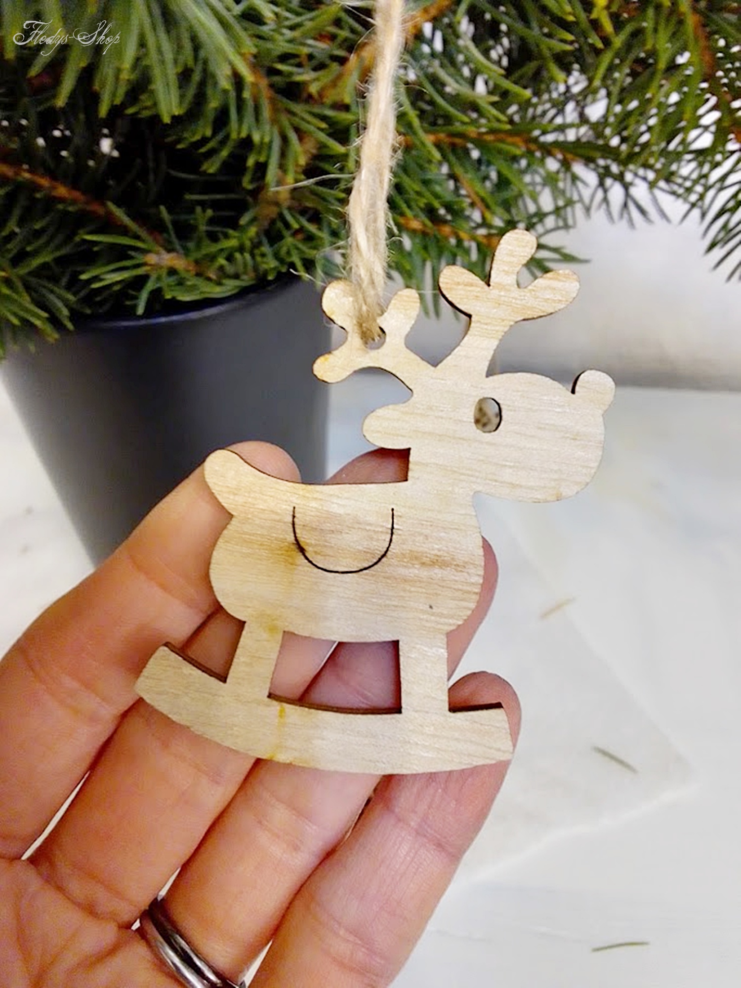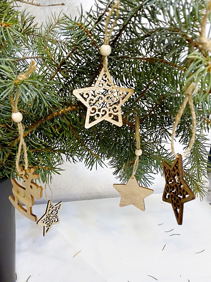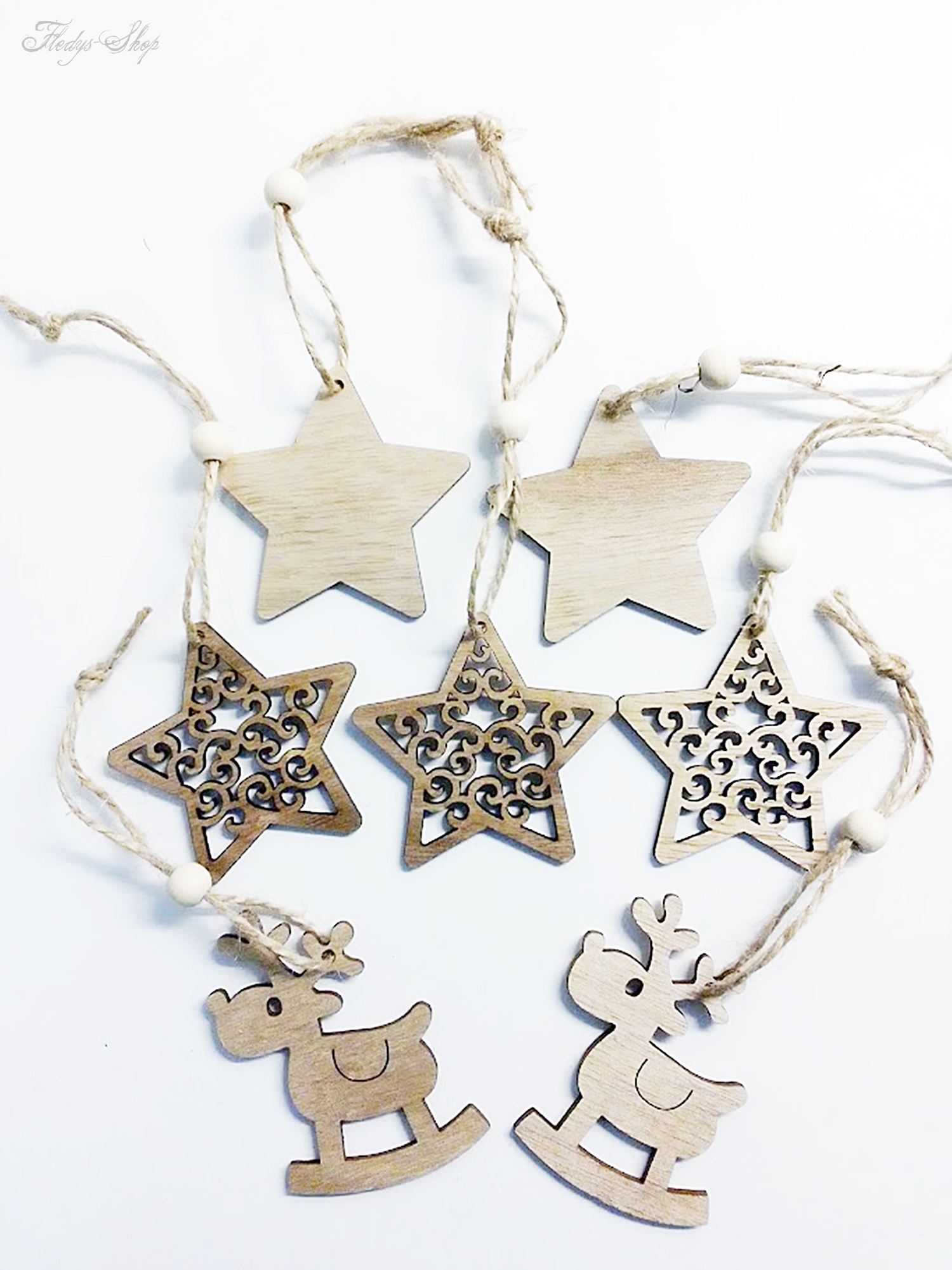 Dieses entzückende Weihnachtsanhänger-Set mit Rentier und Sternen ist für einen großartigen Baumschmuck bereit. Zu jedem Holzanhänger gehört eine Juteschnur mit Holzperle für die sofortige Nutzung der Dekoration.