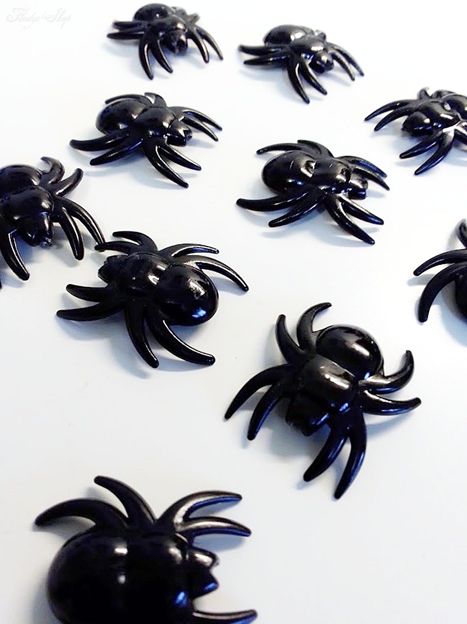 10 schwarze Acryl-Spinnen zum Dekorieren, als Bastel- oder als Wurfmaterial geeignet. Sie lassen sich auf Hütte und Kopfschmuck kleben oder als Dekoration auf Bekleidung bzw. an Schmuck verarbeiten.