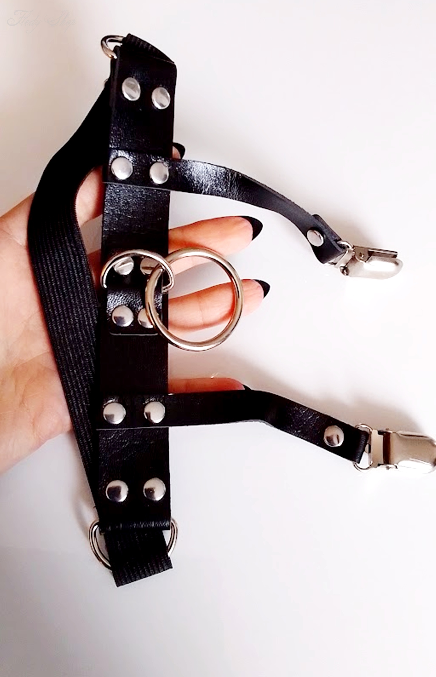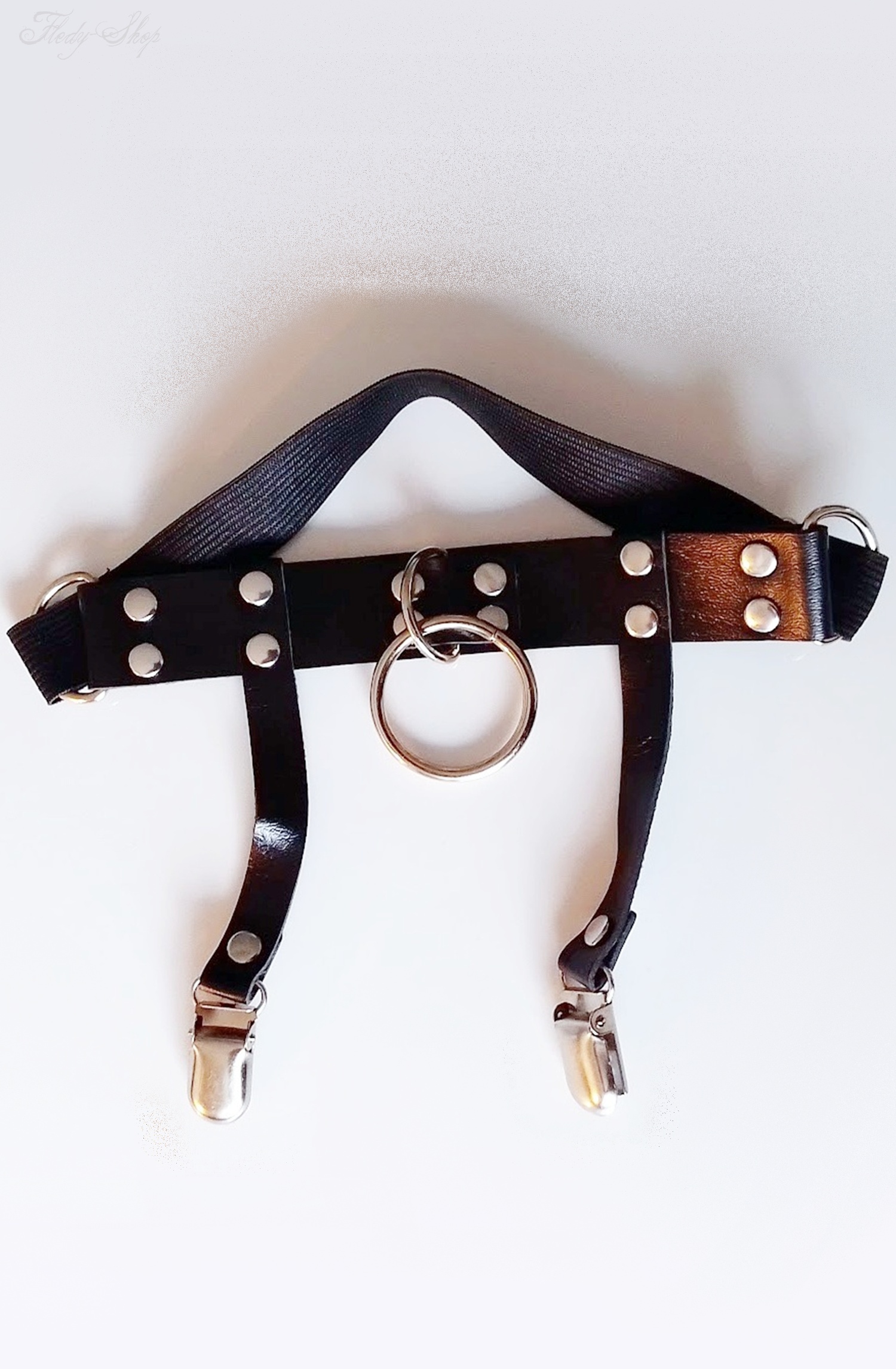 Dieses dehnbare Strumpfband, ist mit einem sehr elastischen Gummiband, Doppelkopfnieten und einem Stahlring gearbeitet. An den hochwertigen Clips werden die gewünschten Strapse befestigt. Das Strumpfband ist in der Größe verstellbar.